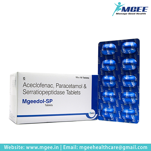 Mgeedol SP is a powerful combination medication designed to relieve pain, inflammation, and swelling. Each tablet contains 100mg of Aceclofenac, 325mg of Paracetamol, and 15mg of Serratiopeptidase, making it effective in treating conditions like arthritis, musculoskeletal pain, and post-operative inflammation. Packaged in a 10×10 Alu Alu pack, Mgeedol SP ensures both efficacy and durability, providing consistent relief when you need it most.