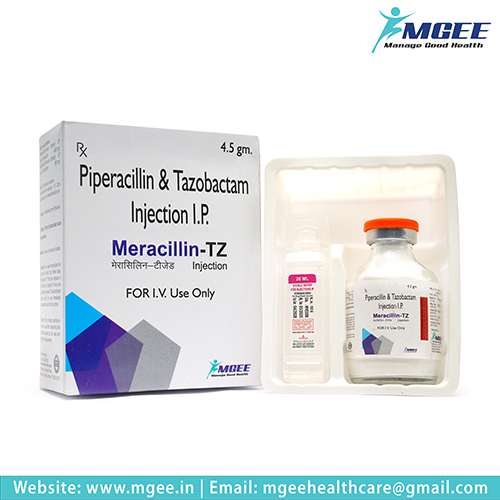 MERACILLIN- TZ is a powerful antibiotic combination of Piperacillin 4gm and Tazobactam 0.5gm. This formulation is used to treat a variety of severe bacterial infections by inhibiting bacterial cell wall synthesis and enhancing the antibacterial efficacy of Piperacillin. Packaged in a 1’S WFI (Water for Injection), it ensures ease of administration and effective treatment.
