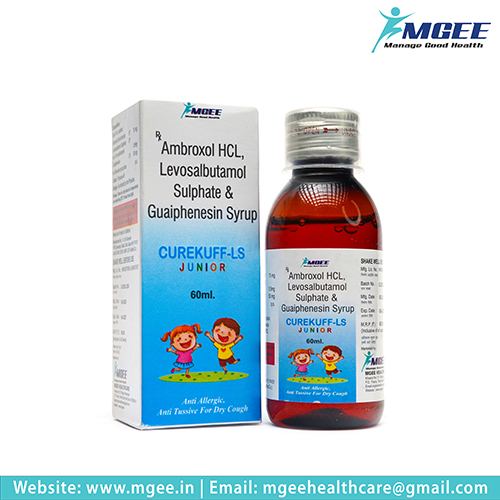 CUREKUFF-LS JUNIOR is used to relieve cough and congestion in children. Each 5 mL dose contains Levosalbutamol, Ambroxol Hydrochloride, and Guaifenesin to help soothe the respiratory tract and manage cough symptoms. Administer as directed based on your child’s age and weight, and consult a healthcare provider if you have concerns or if your child has pre-existing conditions or is on other medications.