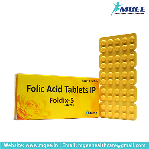 FOLDIX-5 is a high-strength folic acid supplement designed to meet the nutritional needs of individuals with increased folic acid requirements. Each tablet contains 5 mg of Folic Acid, essential for red blood cell formation and the prevention of folate deficiency anemia. FOLDIX-5 is ideal for women planning pregnancy, pregnant women, and individuals with certain medical conditions requiring folic acid supplementation. Packaged in a 5x5x10 blister format, FOLDIX-5 ensures convenience and protection of each tablet.