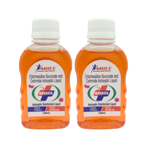 HEXNOX is a potent antiseptic liquid formulated with Chlorhexidine Gluconate and Cetrimide, designed for effective disinfection and wound care. This versatile antiseptic solution is ideal for cleaning and disinfecting wounds, cuts, abrasions, and minor burns. HEXNOX ensures comprehensive antimicrobial action, promoting faster healing and preventing infection.