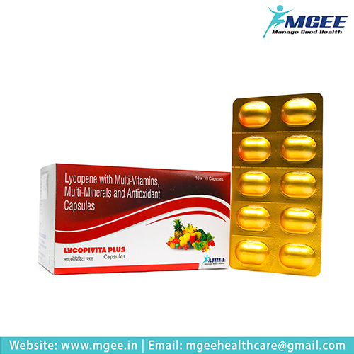 Composition: Lycopene 6% USP 5 mg. Lutein 8% USP 6 mg. Beta Carotene (10% Dispersion) USP 10 mg. Vitamin B6 1 mg. Vitamin B12 5 mcg. Vitamin D3 200 IU. Folic Acid 500 mcg. Calcium Pantothenate 5 mg. Niacinamide 25 mg Biotin USP 10 mcg. Lysine Hydrochloride USP 50 mcg. Ferrous Fumarate IP 45 mg. Dibasic Calcium Phosphate IP 75 mg. Zinc Sulphate IP 10 mg. Magnesium Hydroxide IP 10 mg. Copper Sulphate USP 500 mcg. Manganese Sulphate USP 500 mcg. Chromium Chloride USP 200 mcg. Sodium Selenate 100 mg.