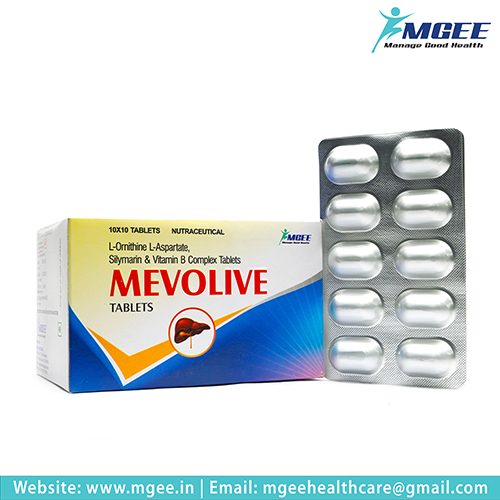 MEVOLIVE is a comprehensive liver support supplement, specially formulated to promote liver health and overall well-being. Each film-coated tablet contains a potent blend of Silymarin (80%), a powerful antioxidant known for its liver-protective properties, along with essential B vitamins, Niacinamide, and L-Ornithine L-Aspartate. This combination helps in detoxifying the liver, enhancing metabolic processes, and supporting liver function. Packaged in a convenient 10×10 Alu Alu format, MEVOLIVE is ideal for those looking to maintain optimal liver health.