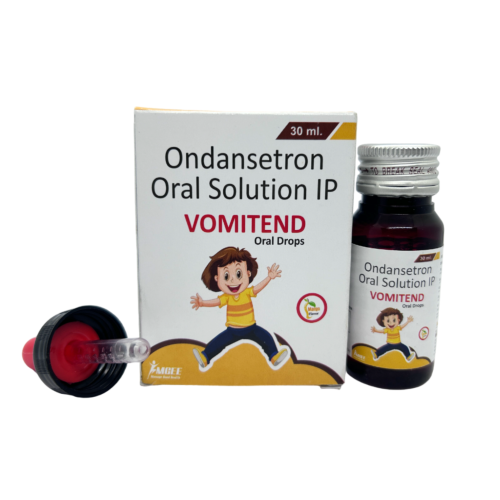 VOMITEND Oral Drops contain Ondansetron 2 mg per drop, a powerful antiemetic used to prevent and treat nausea and vomiting. Ondansetron works by blocking the action of chemicals in the brain that trigger nausea and vomiting. These drops are ideal for managing symptoms associated with chemotherapy, radiation therapy, or post-operative recovery. VOMITEND provides quick relief and is easy to administer with the included dropper.